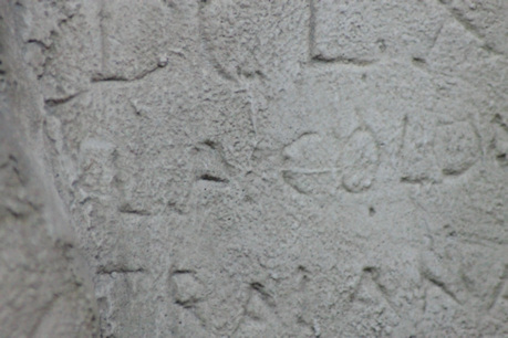 Fotografare da vicino significa potersi soffermare su particolari che altrimenti sfuggirebbero. E così – impossibile a vedersi dal vero, data l’altezza – grazie ai calchi del Museo della Civiltà Romana si scoprono tracce di altre storie che si intrecciano con la Colonna, come il ricordo di un visitatore di tanto tempo fa.